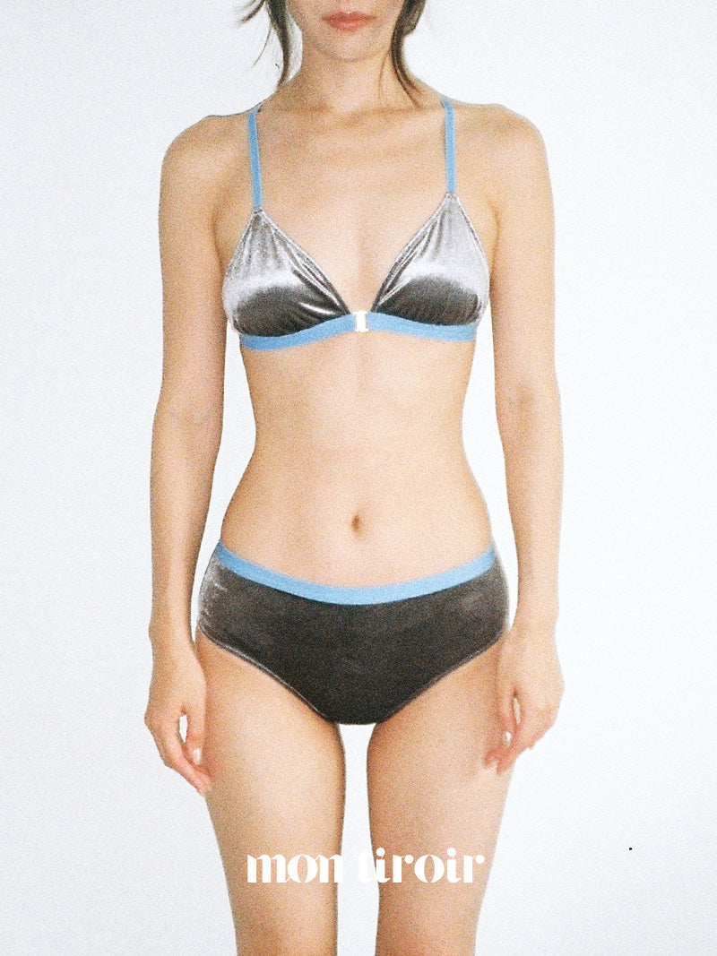 Made in lightweight velvet fabric with a subtle metallic sheen, offering a smooth and luxurious texture.