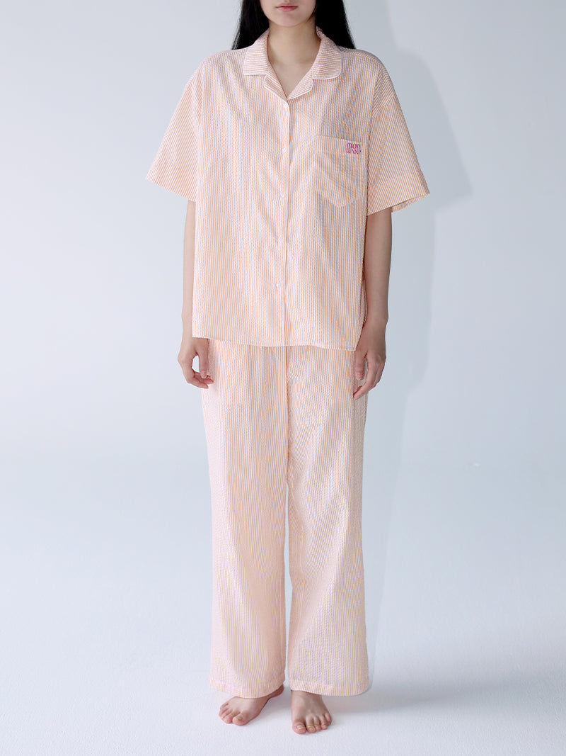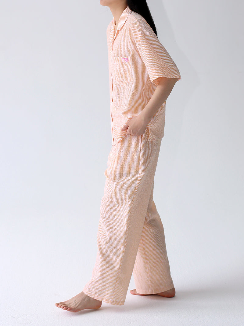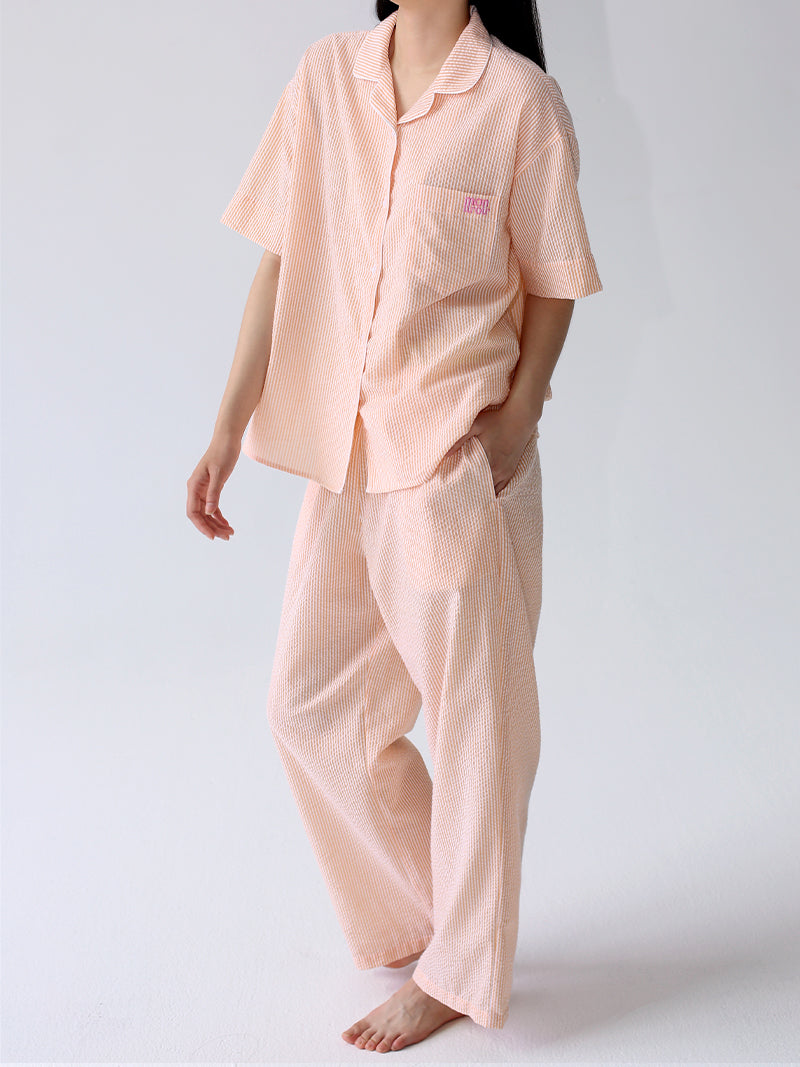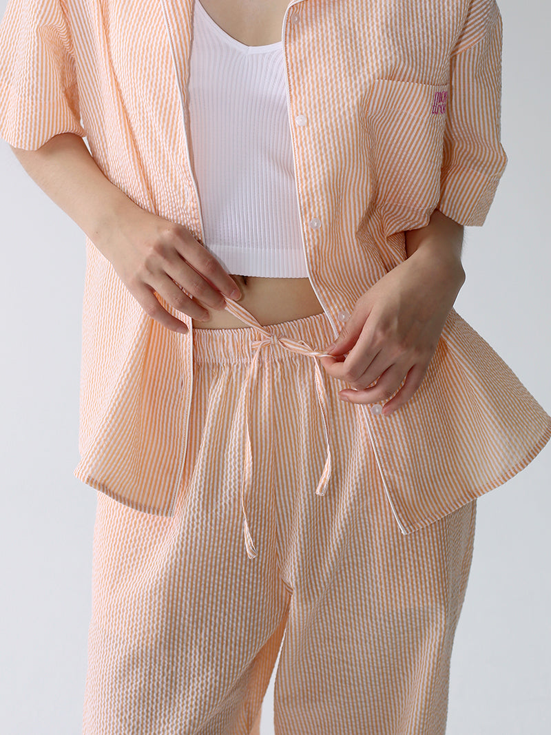 Classic stripes paired with textured seersucker for a sweet, relaxed look.