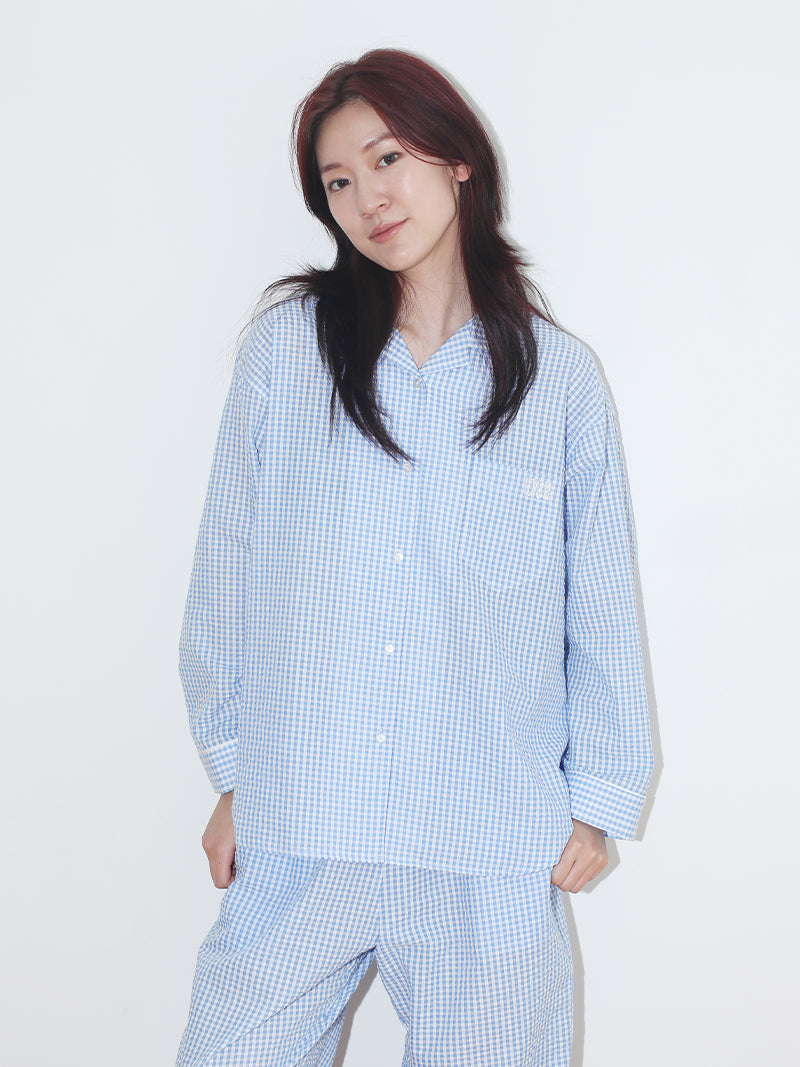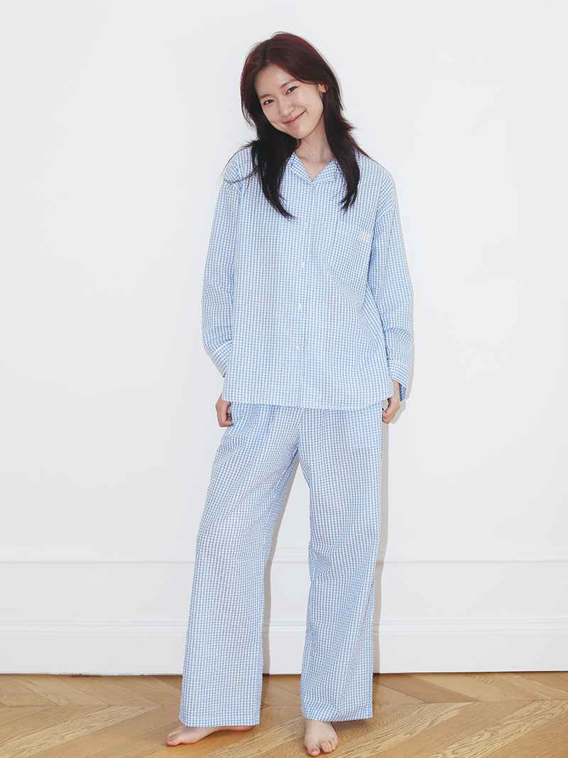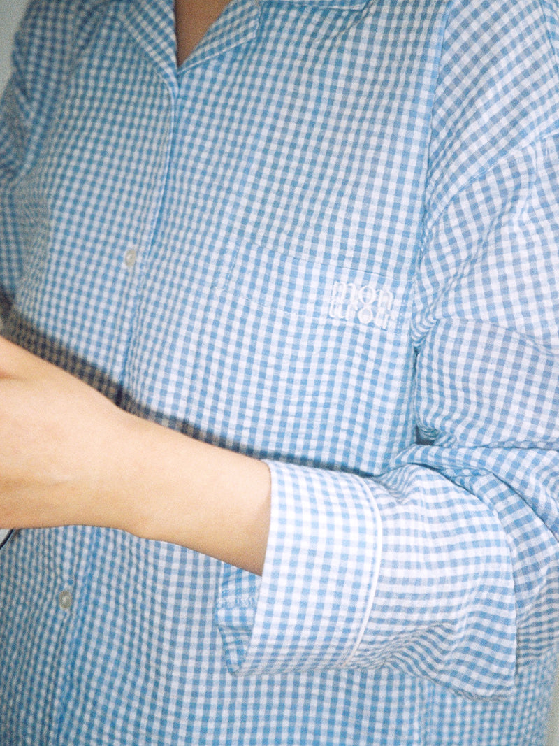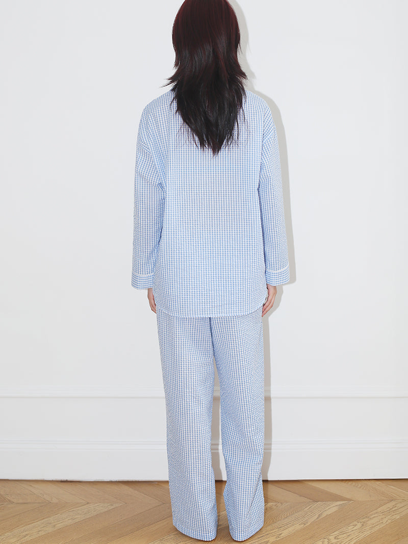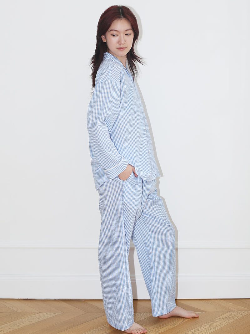 Classic gingham meets airy seersucker texture for a refreshing and cozy touch.