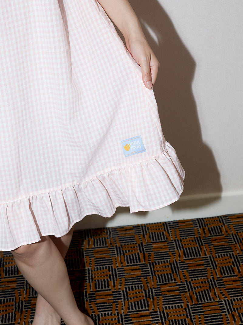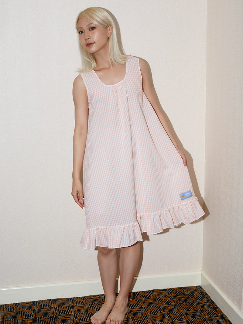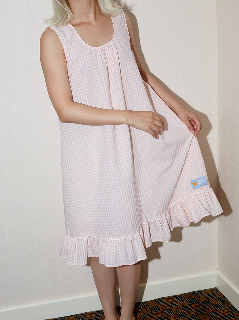 Soft cotton gingham seersucker meets retro femininity in this sleeveless nightdress.