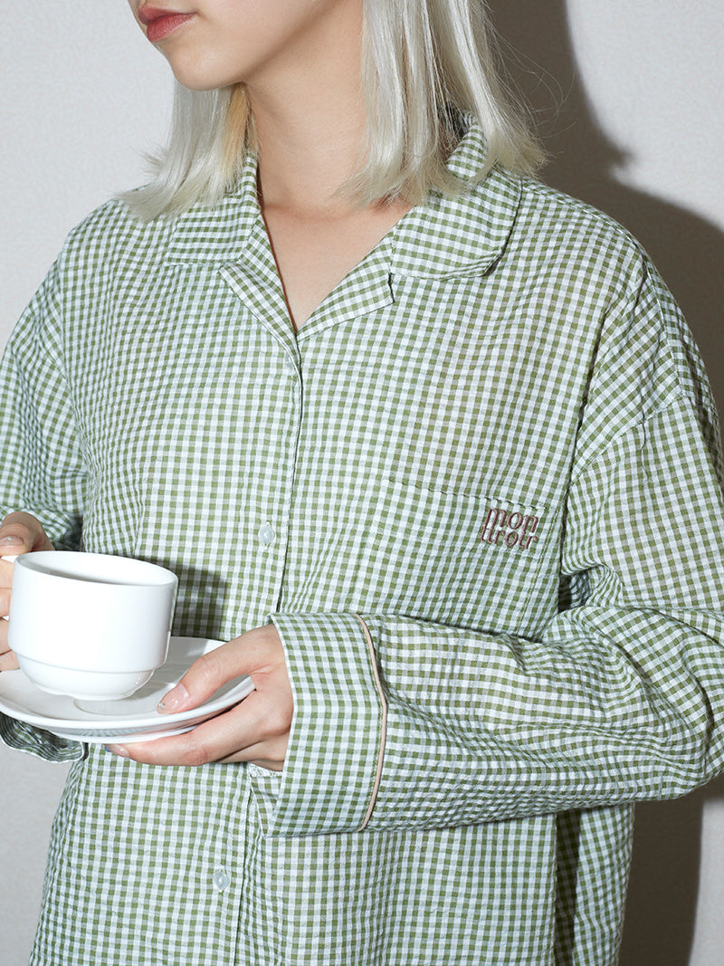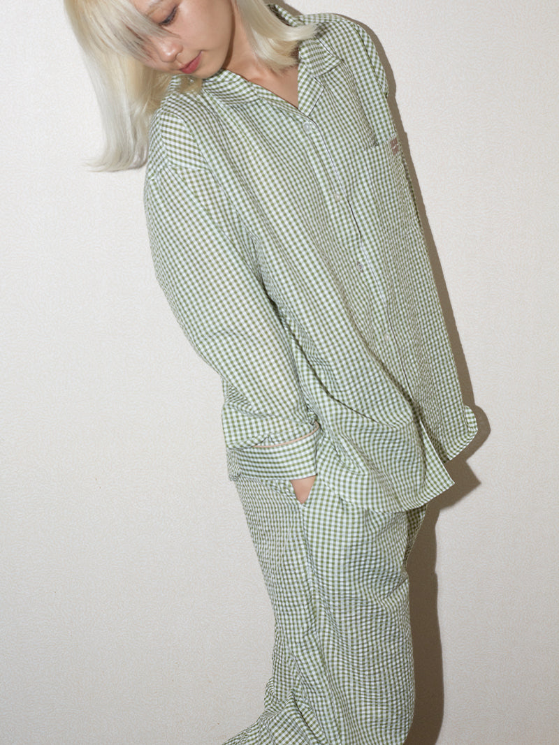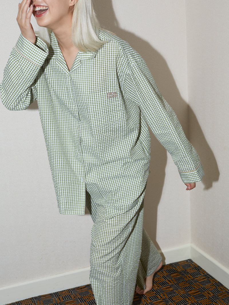 Classic gingham meets airy seersucker texture for a refreshing and cozy touch.