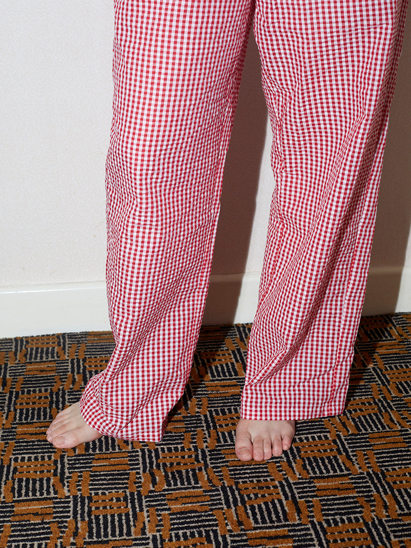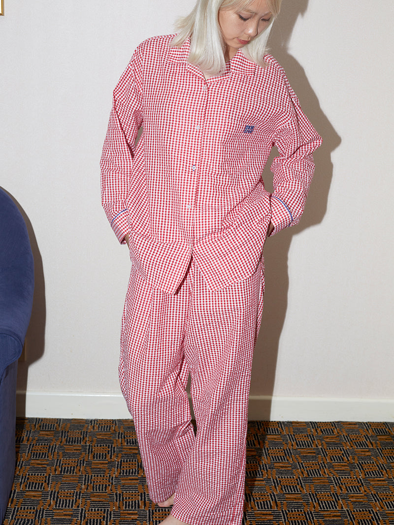 Classic gingham meets airy seersucker texture for a refreshing and cozy touch.