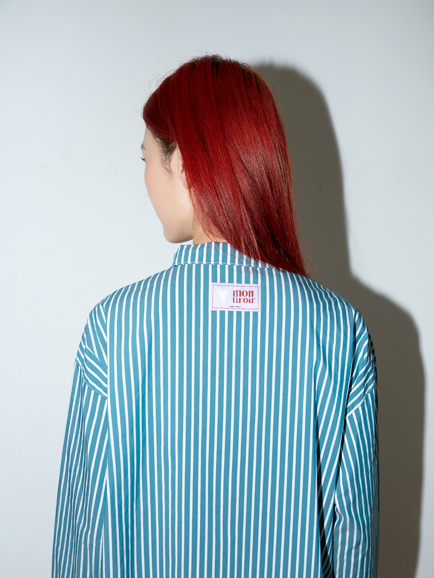 Crafted from a soft, breathable cotton-blend fabric, it is gentle on the skin while offering better wrinkle resistance than pure cotton. The set includes a long-sleeved button-down shirt with a mon tiroir logo-embroidered chest pocket, paired with full-length pants for effortless lounging.